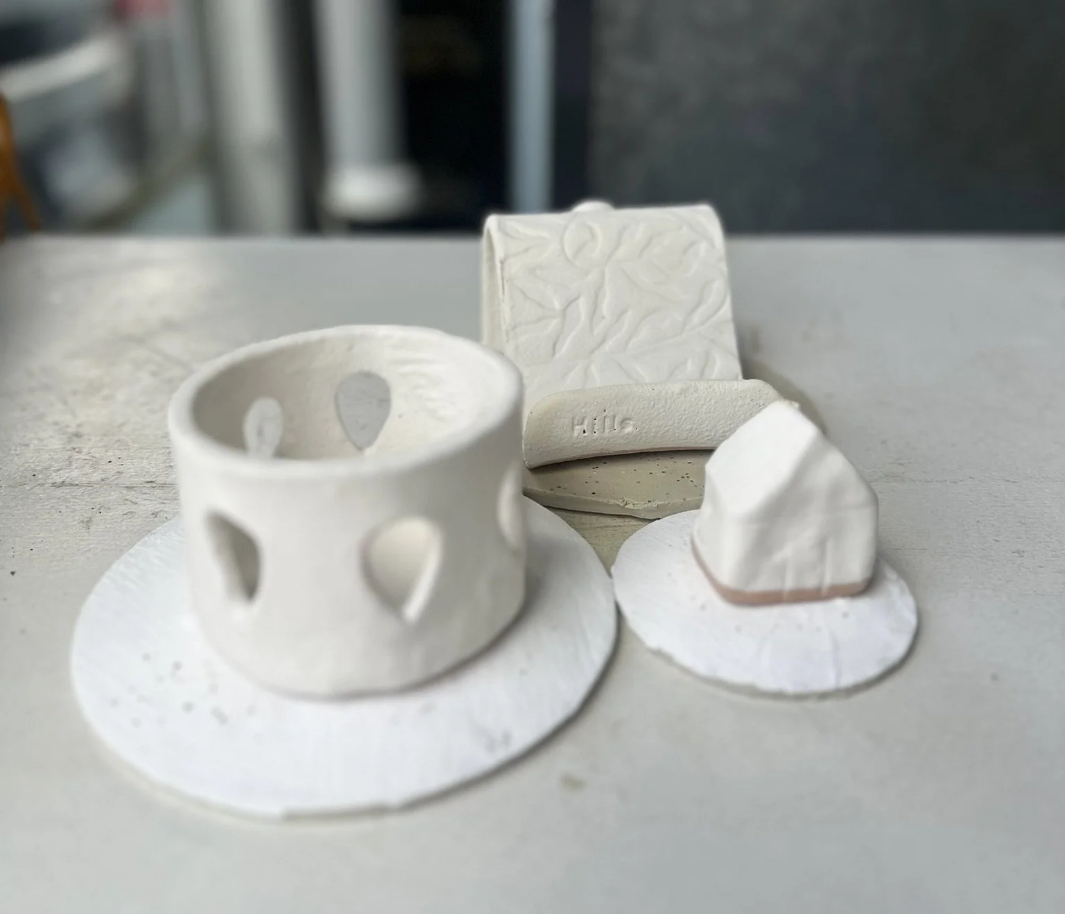 Your work must be completely dry (bone dry) before firing — no damp or freshly made pieces. Please handle with care and make sure your work is signed with your maker’s mark. Work without a maker’s mark will not be fired.